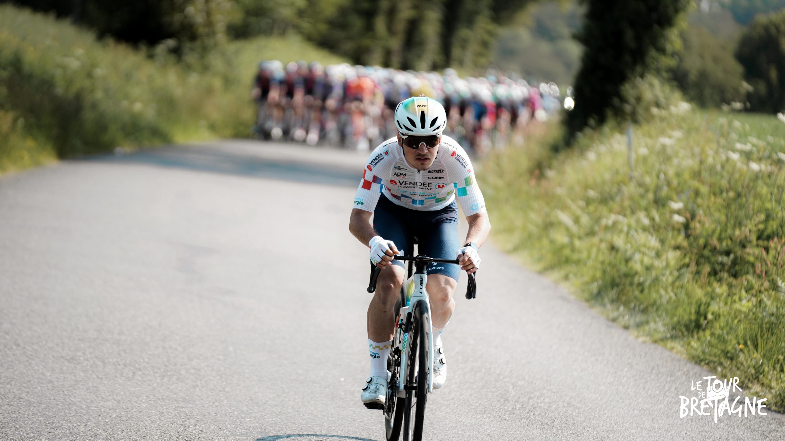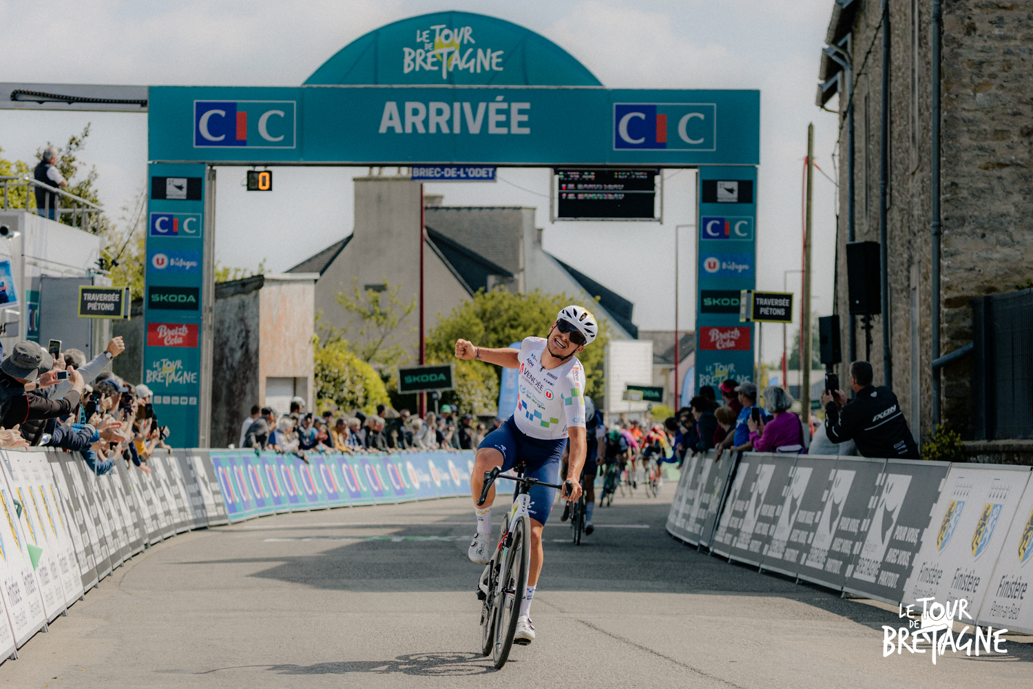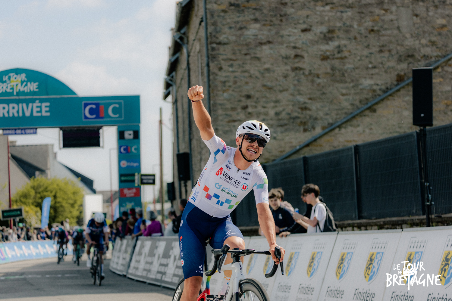 Mathéo Barusseau (Vendée U-Primeo Energie) a remporté la 4e étape du Tour de Bretagne à Briec-de-l’Odet, au terme de la plus longue journée de cette 59e édition. Présent dans l’échappée dès les premiers kilomètres, il a résisté au retour du peloton avant de contrer Bogdan Zabelinskiy dans les 300 derniers mètres.