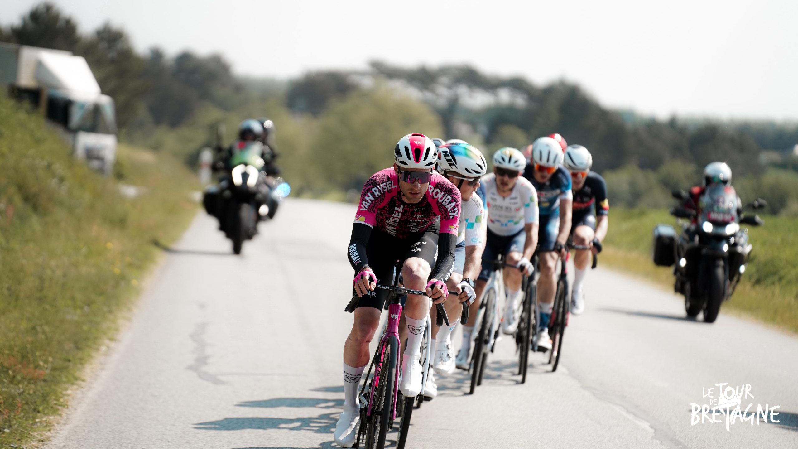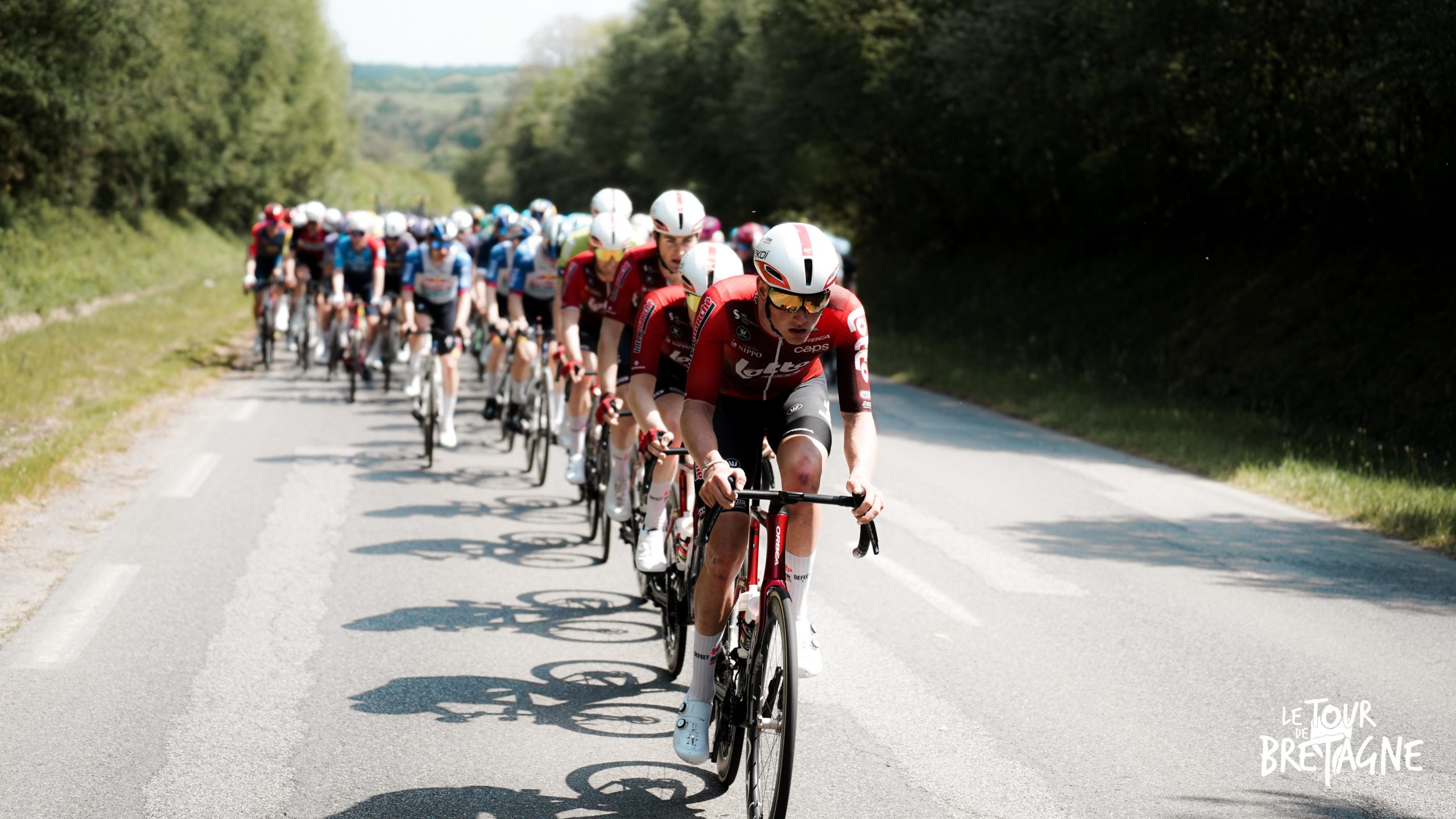 La plus longue étape de ce Tour de Bretagne, disputée sur 204,7 kilomètres entre Ploërmel et Briec-de-l’Odet, a rapidement pris une tournure offensive. Dès les premiers kilomètres, Swann Guefveneu puis Léandre Huck ont lancé les hostilités, avant qu’un groupe solide ne se forme à l’avant. Autour de Silas Koech, Huck, Sander Granberg, Mathéo Barusseau, Guefveneu, Axel Van den Broek et Bogdan Zabelinskiy, l’échappée a profité d’un peloton morcelé par le vent et les bordures.