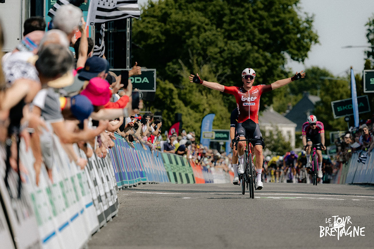 Halvor Dolven (Lotto-Groupe Wanty) a remporté la 2e étape du Tour de Bretagne à Missillac, au terme d’un final haletant. Membre d’une échappée partie dès le début de course, le Norvégien a résisté jusqu’au bout avec Léandre Huck et Sebastian Veslum avant de s’imposer au sprint. Le peloton, revenu tout près, a échoué à quelques secondes.