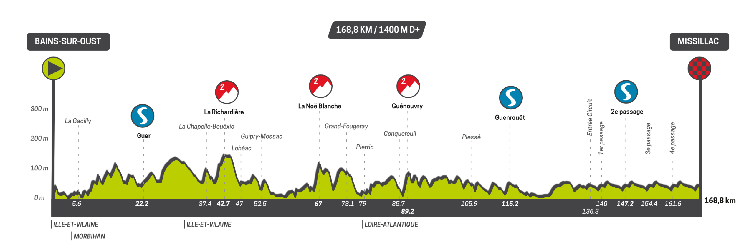 Les coureurs quitteront l’Ille-et-Vilaine pour la Loire-Atlantique sur des routes qui ne représenteront pas un défi majeur pour un peloton de futurs professionnels. Le circuit final est le plus plat de la semaine. L’étape est clairement promise à un sprinteur et il sera difficile d’échapper à la vigilance du peloton dans les rues de Missillac.