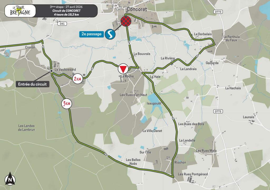 Direction plein nord pour rejoindre les confins du Morbihan et de l’Ille-et-Vilaine. Si le début d’étape, en quittant la Loire-Atlantique, ne s’annonce pas difficile, il n’en est pas de même alors que le peloton s’approche de Concoret. Après 100 kilomètres, le parcours devient plus rugueux au cœur de la mythique forêt de Brocéliande. Le Tour de Bretagne ne se gagnera pas sur cette étape mais il peut s’y perdre sur le sinueux circuit final de Concoret qui n’est pas si facile à négocier.